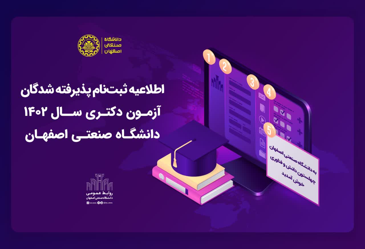 اطلاعیه | ثبت نام پذيرفتهشدگان آزمون دکتري سال 1402 دانشگاه صنعتي اصفهان