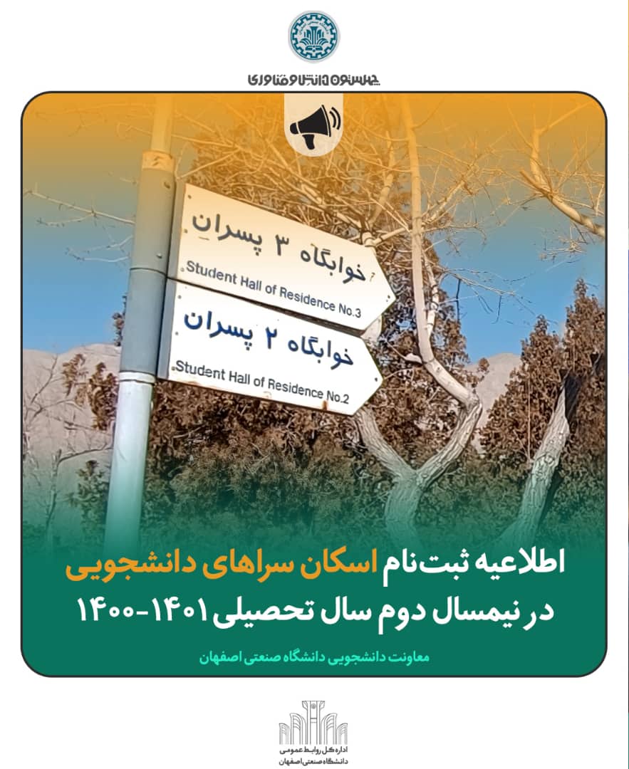 اطلاعیه ثبتنام اسکان سراهای دانشجویی در نیمسال دوم سال تحصیلی 1401-1400