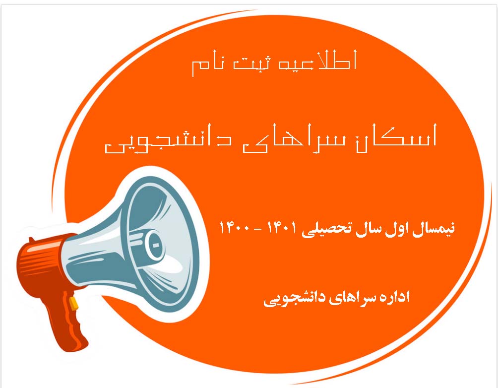 اطلاعیه ثبت نام اسکان سراهای دانشجويی در نیمسال اول سال تحصیلی 1401-1400