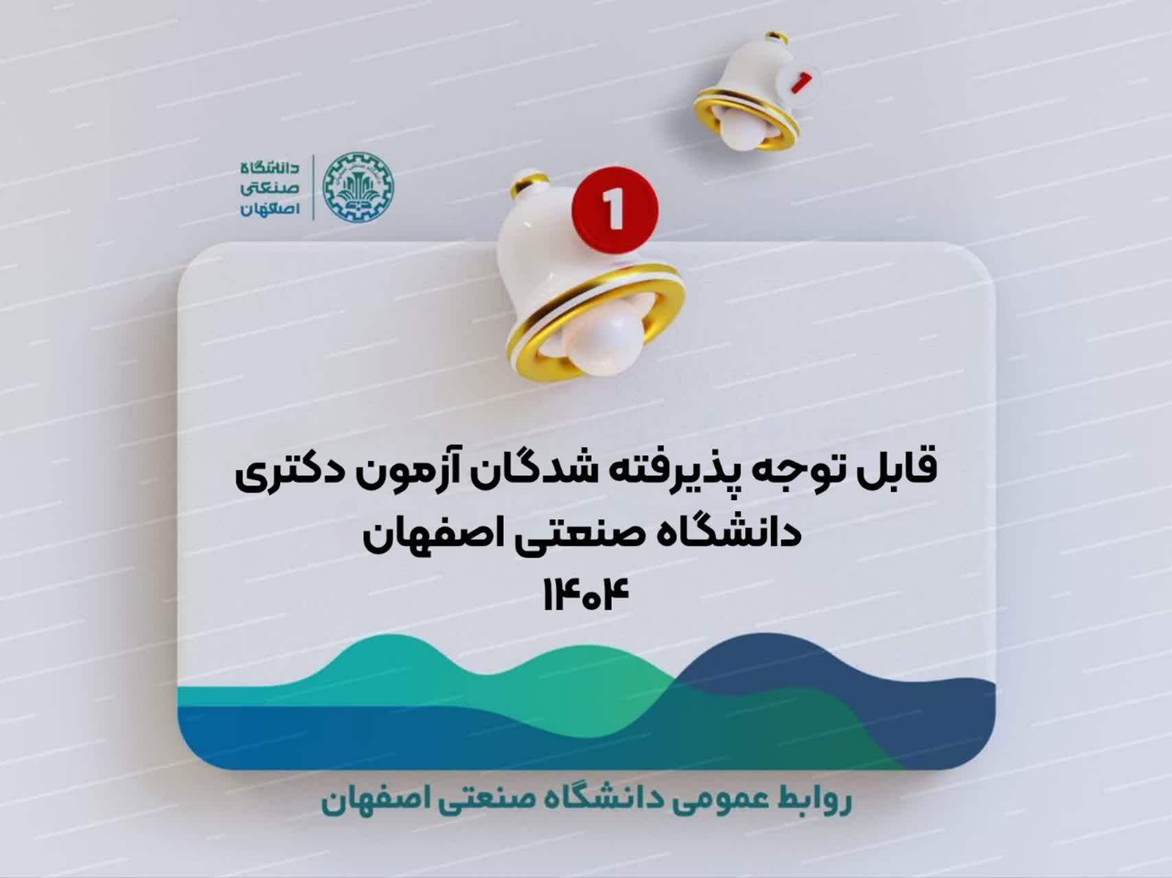 قابل توجه پذيرفتهشدگان آزمون دکتري سال 1404 دانشگاه صنعتي اصفهان