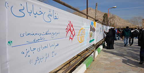دانشجویان دانشگاه صنعتی اصفهان به مناسبت روز دانشجو با حضور در جاده ابریشم این دانشگاه، دغدغه های اجتماعی و زندگی دانشجویی را در قالب نقاشی و کاریکاتور به نمایش گذاشتند.