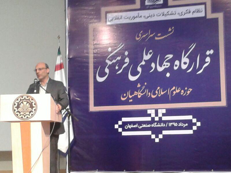 گفتنی است: نشست سراسری قرار گاه جهاد علمی فرهنگی حوزه علوم اسلامی دانشگاهیان با هدف تحقق دانشگاه اسلامی بر پایه اندیشه و علوم دینی و تلاش برای گسترش اندیشه اسلامی با شعار نظام فکری، تشکیلات دینی، ماموریت انقلابی تا جمعه 29 مردادماه در دانشگاه صنعتی اصفهان ادامه دارد.