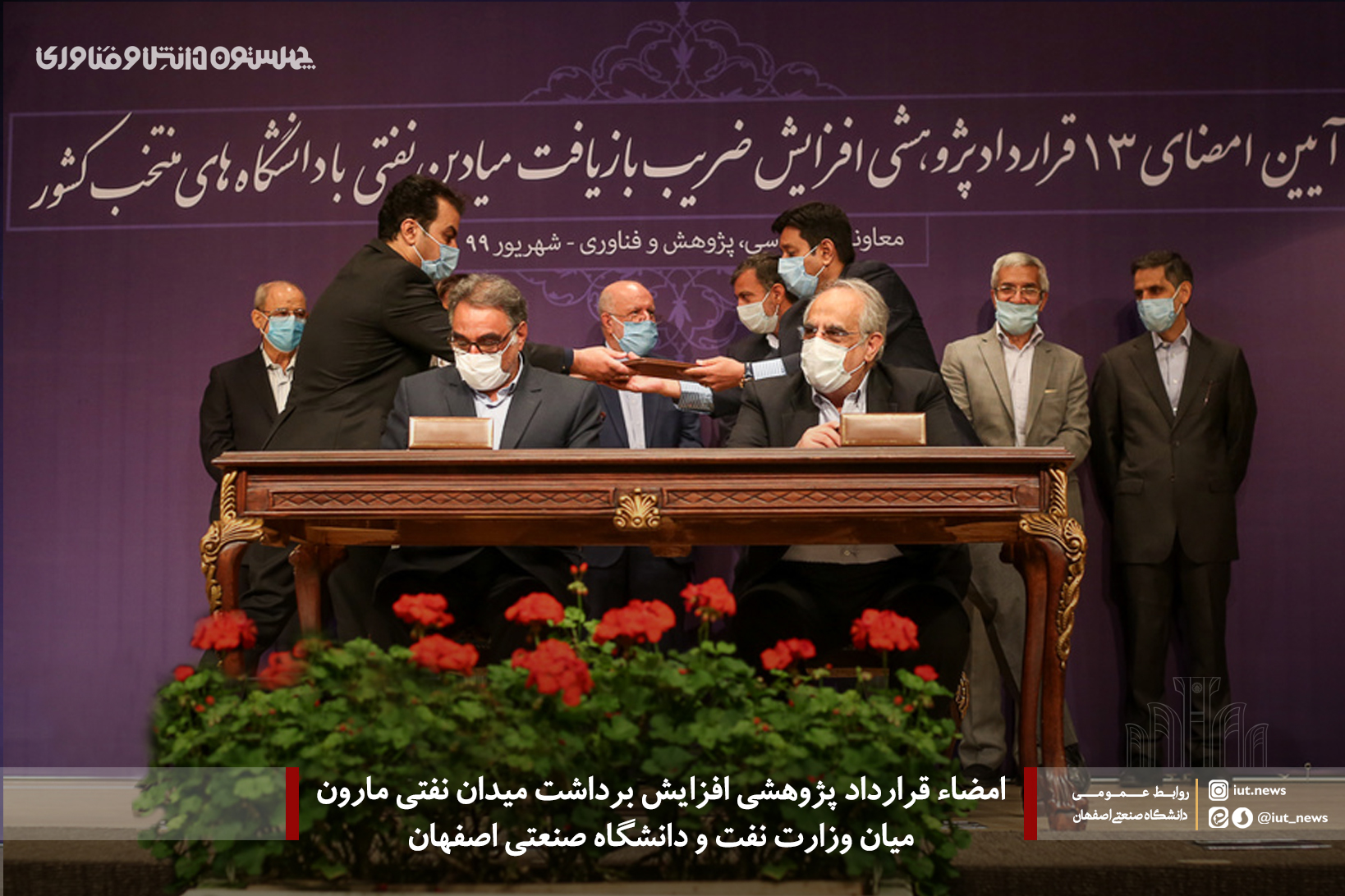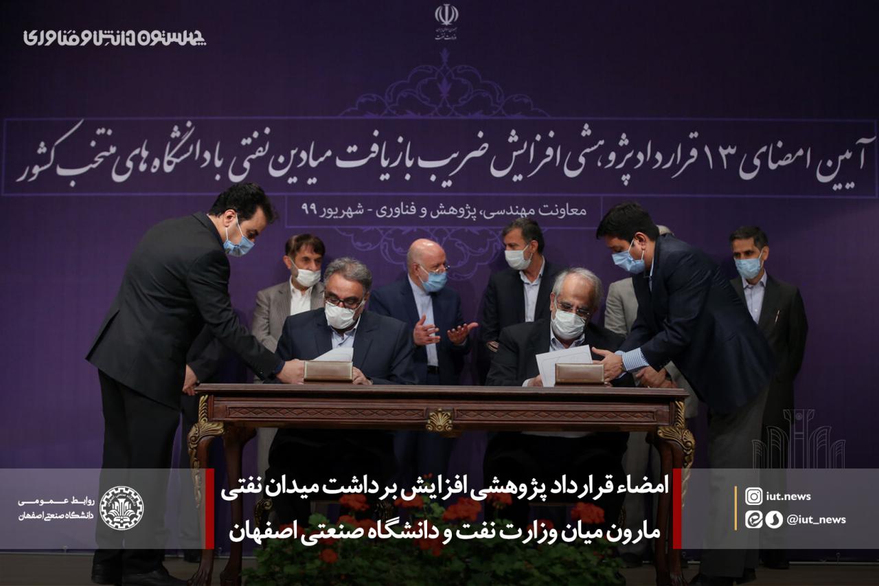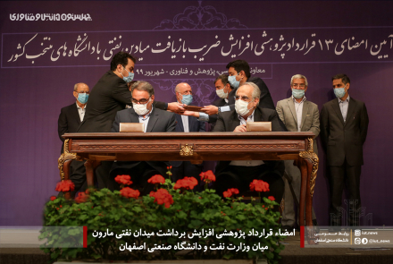 در مراسم امضاء قرارداد پژوهشی میان وزارت نفت و تعدادی از دانشگاه های کشور، قرارداد طرح پژوهشی افزایش ضریب بازیافت میدان نفتی مارون به امضاء رئیس دانشگاه صنعتی اصفهان و مدیرعامل شرکت ملی نفت ایران رسید.