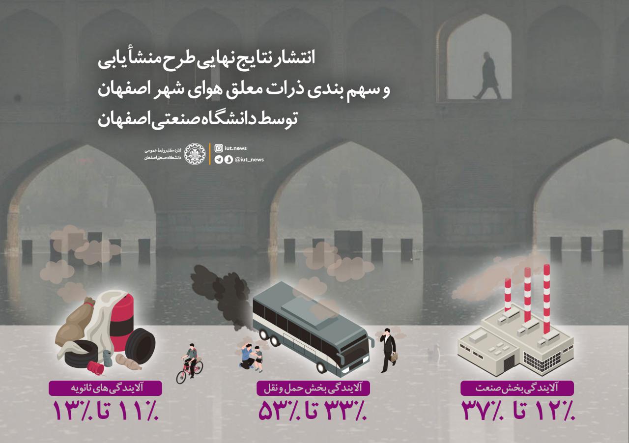 دستاوردهای طرح منشأیابی و سهم بندی ذرات معلق هوای شهر اصفهان منتشر شد