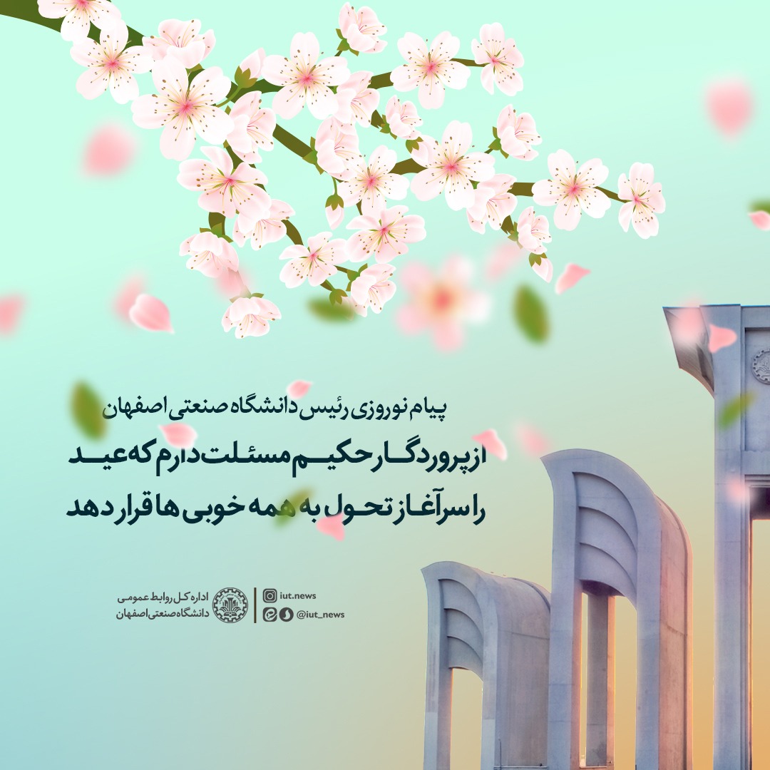 پیام دکتر سید مهدی ابطحی رئیس دانشگاه صنعتی اصفهان به مناسبت حلول بهار و سال 1400