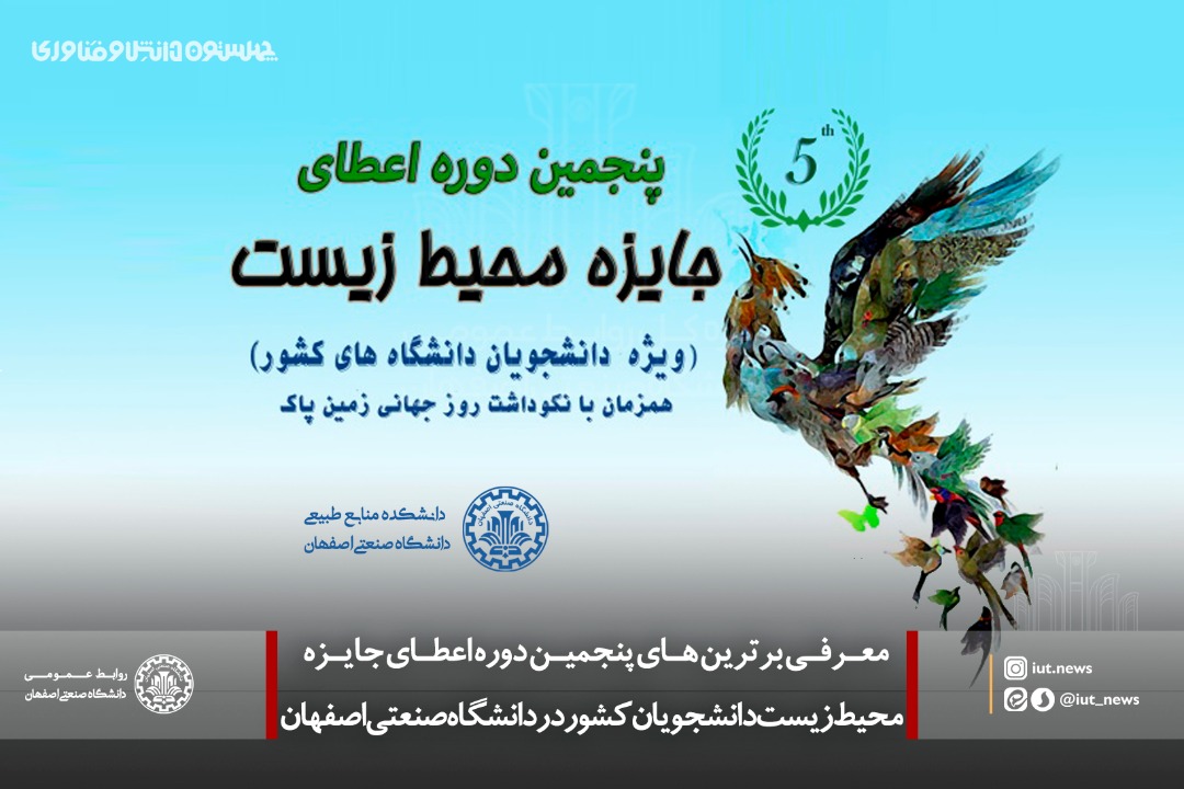 پنجمین دوره اعطای جایزه محیط زیست دانشجویان کشور به صورت مجازی و با معرفی نفرات برتر بخش های مختلف، در دانشگاه صنعتی اصفهان به پایان رسید.