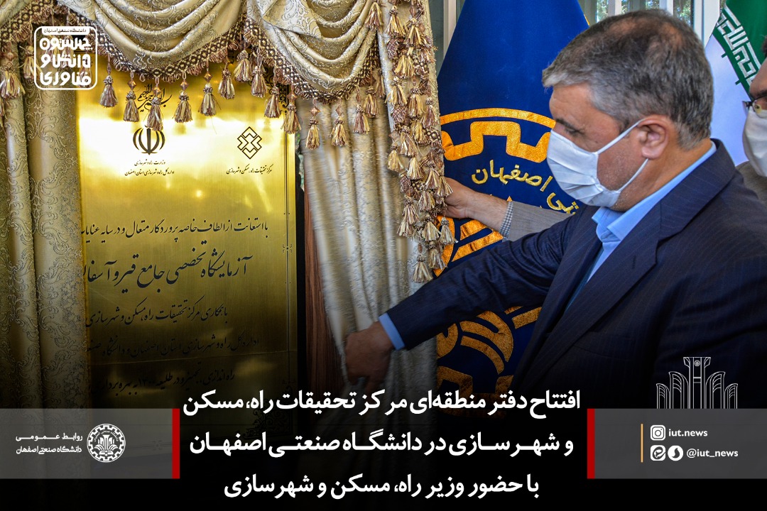 دفتر منطقه ای مرکز تحقیقات راه، مسکن و شهرسازی به همراه مجموعه تحقیقاتی و آزمایشگاه تخصصی قیر و آسفالت این مرکز، امروز پنج شنبه 30 اردیبهشت ماه ، توسط وزیر راه و شهرسازی در دانشگاه صنعتی اصفهان افتتاح شد.