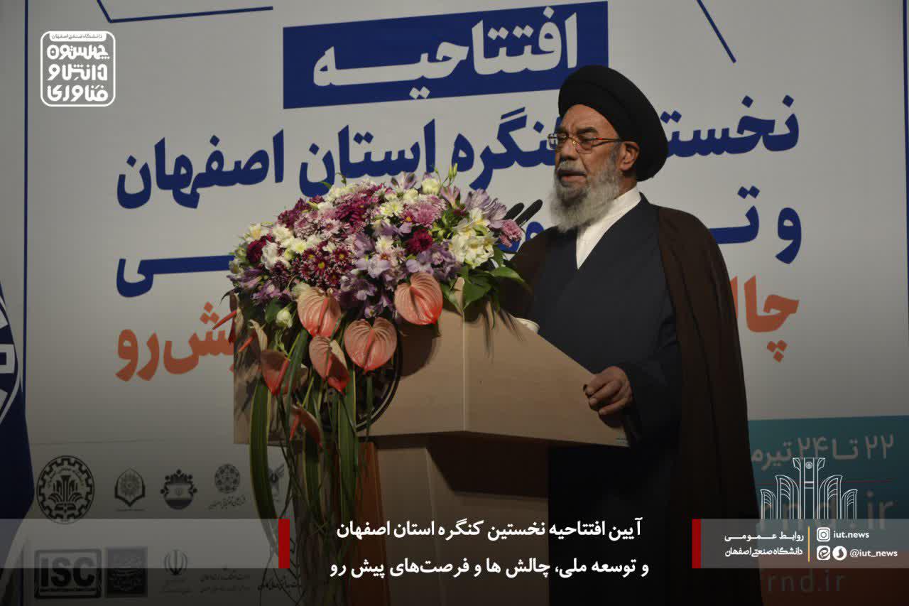 نماینده ولی فقیه در استان و امام جمعه اصفهان درنخستین کنگره 'استان اصفهان و توسعه ملی، چالشها و فرصتهای پیشرو' امروز سه شنبه 22 تیرماه در دانشگاه صنعتی اصفهان گفت:همه می دانیم فرصت فراوان است، اما چالش مهم اصفهان که رفع آن نیز مشکل نیست، مسئله آب است.