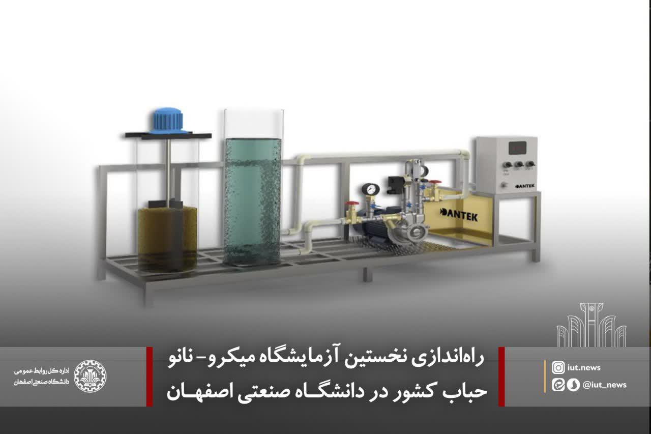 برای نخستین بار در كشور، آزمایشگاه میکرو– نانو حباب با حمایت دانشگاه صنعتی اصفهان و با مشاركت شركت رويشي دانش بنيان 'دانتک' در مرکز نوآوری وتجاری سازی فناوری دانشگاه صنعتی اصفهان، طراحي و راه اندازي شد.