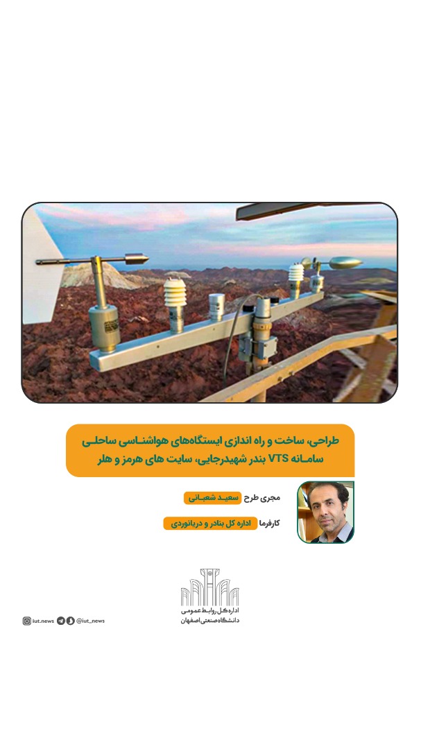 طراحی، ساخت و راه اندازی ایستگاه های هواشناسی ساحلی سامانه VTS بندر شهید رجایی - سایت هلر و هرمز، زير نظر مهندس سعید شعبانی، عضو هيئت علمي پژوهشکده علوم و فناوری زیردریا دیگر طرح برگزیده دانشگاه ها و پژوهشگاه های کشور است.