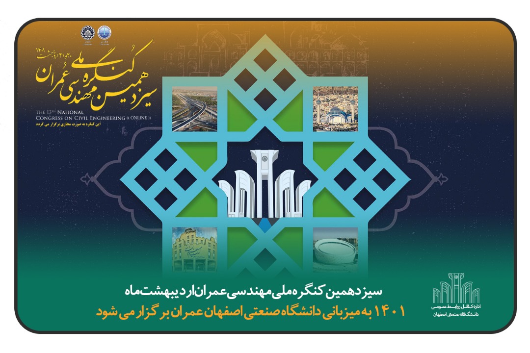 سیزدهمین کنگره ملی مهندسی عمران20 و 22 اردیبهشت ماه1401 به میزبانی دانشکده مهندسی عمران دانشگاه صنعتی اصفهان و به صورت برخط برگزار مي شود.