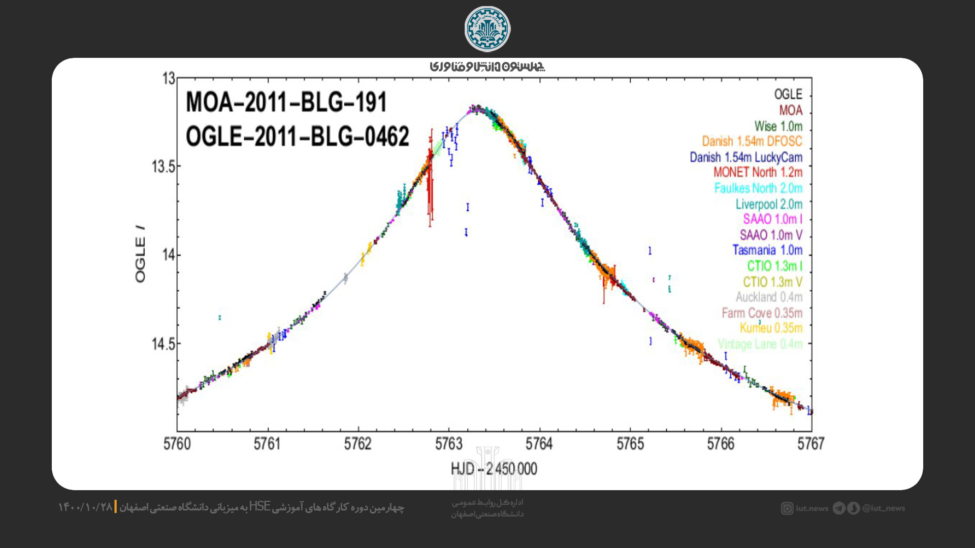 عضو هیئت علمی دانشكده فيزيك دانشگاه صنعتي اصفهان با اشاره به اهمیت دادهكاهي در اين گروه بينالمللي گفت: دادهكاهي و آنالیز تصاوير نجومي تلسكوپهاي مختلف از رویداد ریزهمگرایی گرانشی OGLE-2011-BLG-0462 با زمان مقیاس 270 روز، منجر به کشف یک سیاهچاله منفرد با جرمی حدودأ 7 برابر جرم خورشید و در فاصله 5 هزار سال نوری از زمین شد.