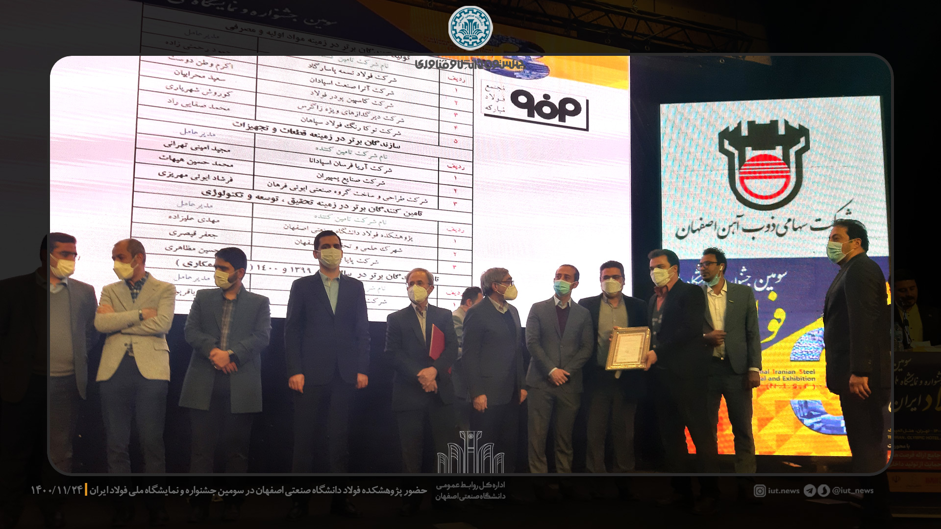 سومین جشنواره و نمایشگاه ملی فولاد ایران توسط انجمن تولید کنندگان فولاد ایران ، از تاریخ 19 تا 21 بهمن ماه در هتل المپیک تهران برگزار و پژوهشکده فولاد دانشگاه صنعتی اصفهان موفق به دريافت عنوان تأمین کننده برتر شرکت فولادمبارکه در حوزه تحقیق و توسعه و تکنولوژی شد.