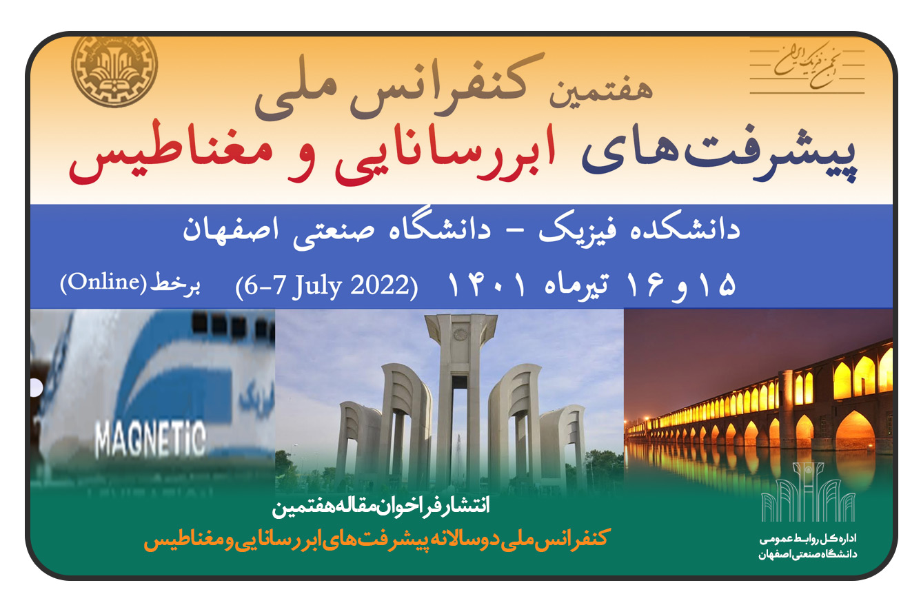 هفتمين دوره كنفرانس ملي دوسالانه پيشرفت هاي ابررساناي و مغناطيس به ميزباني دانشكده فيزيك دانشگاه صنعتي اصفهان، ۱۵ و ۱۶ تيرماه ۱۴۰۱ به طور برخط در دانشگاه صنعتي اصفهان برگزار مي شود.