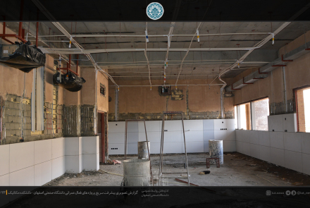 مدیر دفتر فني و نظارت بر طرح هاي عمراني دانشگاه صنعتي اصفهان روند ساخت و ساز را در روزهاي پايان سال مطلوب دانست و خاطر نشان كرد: در حال حاضر عملیات اجرایی سنگ فرش کف راهروها، تست و عایق کاری لوله های تاسیسات مکانیکی، تکمیل کانال های تهیه هواي مطبوع و عایق های آن در دست اقدام می باشد.