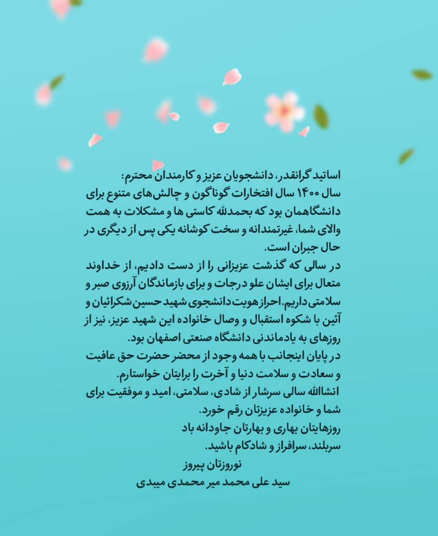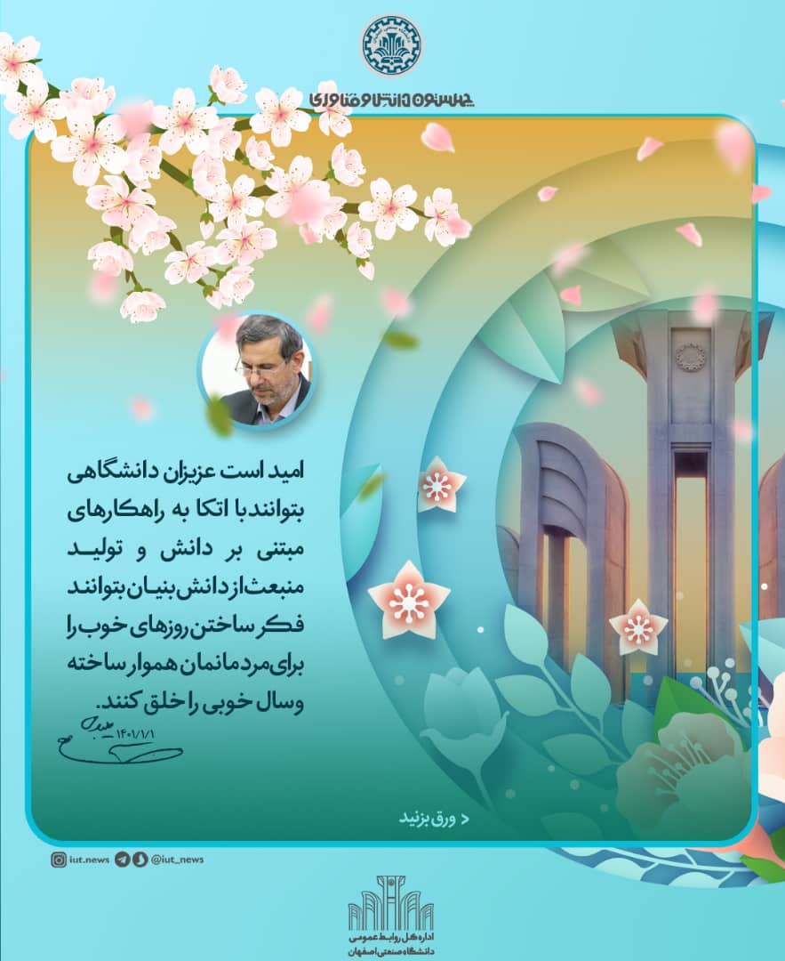 پیام نوروزی سرپرست دانشگاه صنعتی اصفهان به مناسبت فرارسیدن نوروز1401