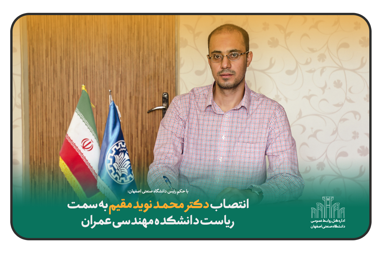 رئيس دانشگاه صنعتي اصفهان ، دکتر محمد نوید مقیم دانشیار جوان دانشكده مهندسي عمران را براي مدت سه سال به سمت رياست دانشكده مهندسي عمران منصوب كرد.