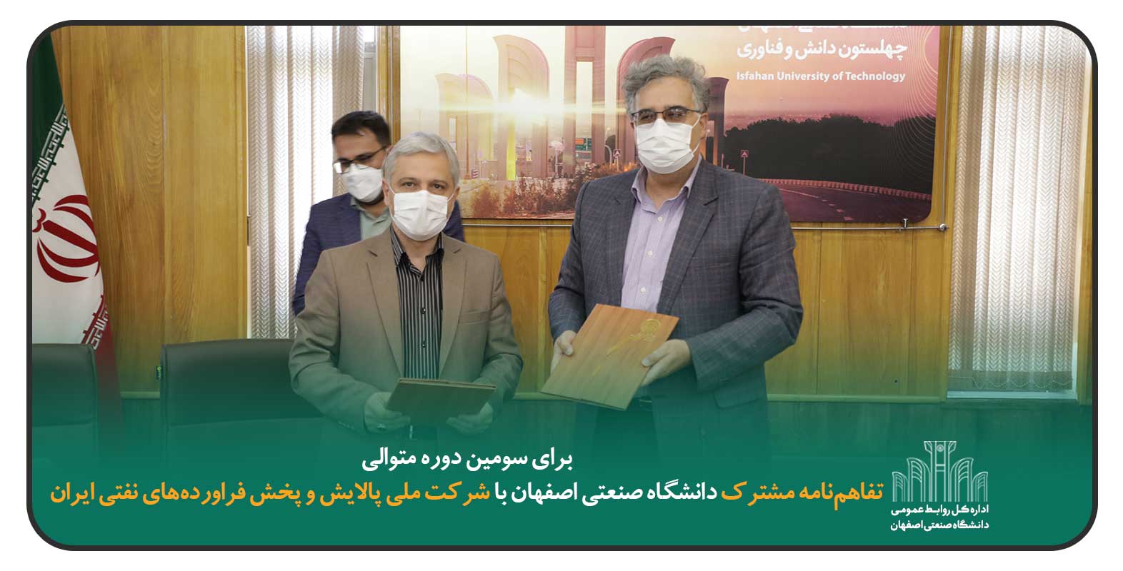 همزمان با تمديد تفاهمنامه همكاري مشترك ميان دانشگاه صنعتي اصفهان و شركت ملي پالايش و پخش فرآوردههای نفتي منطقه اصفهان، زمينه استقرار نماينده پژوهشي اين شركت در دانشگاه صنعتي اصفهان براي توسعه همکاریهای مشترك علمي و فناوري فراهم شد.