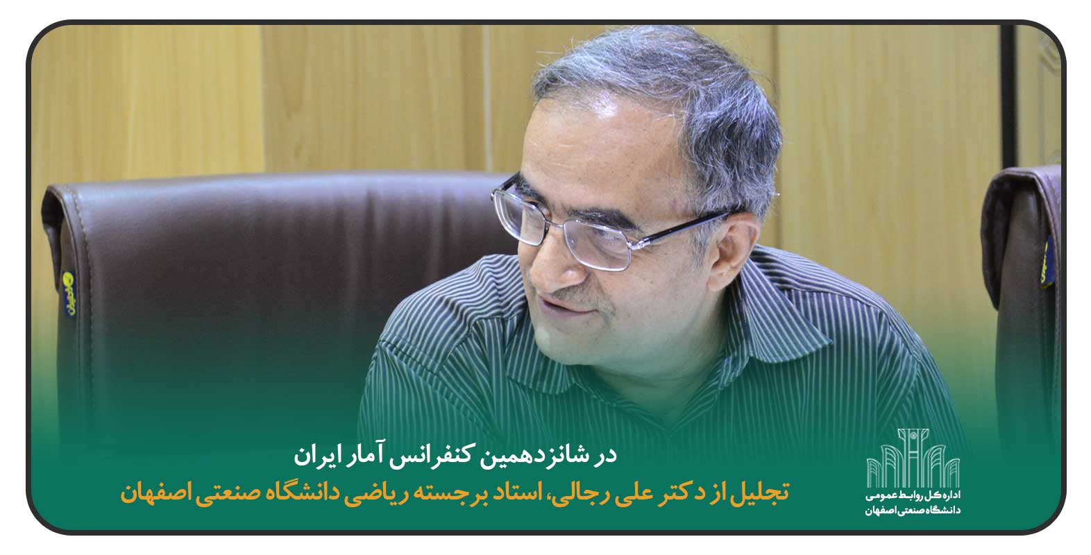 روابطعمومی دانشگاه صنعتي اصفهان، انتخاب شايسته آقاي دكتر رجالي را بهعنوان پيشكسوت برجسته آمار ايران، به ايشان و خانواده بزرگ دانشگاه صنعتي اصفهان تبريك میگوید.