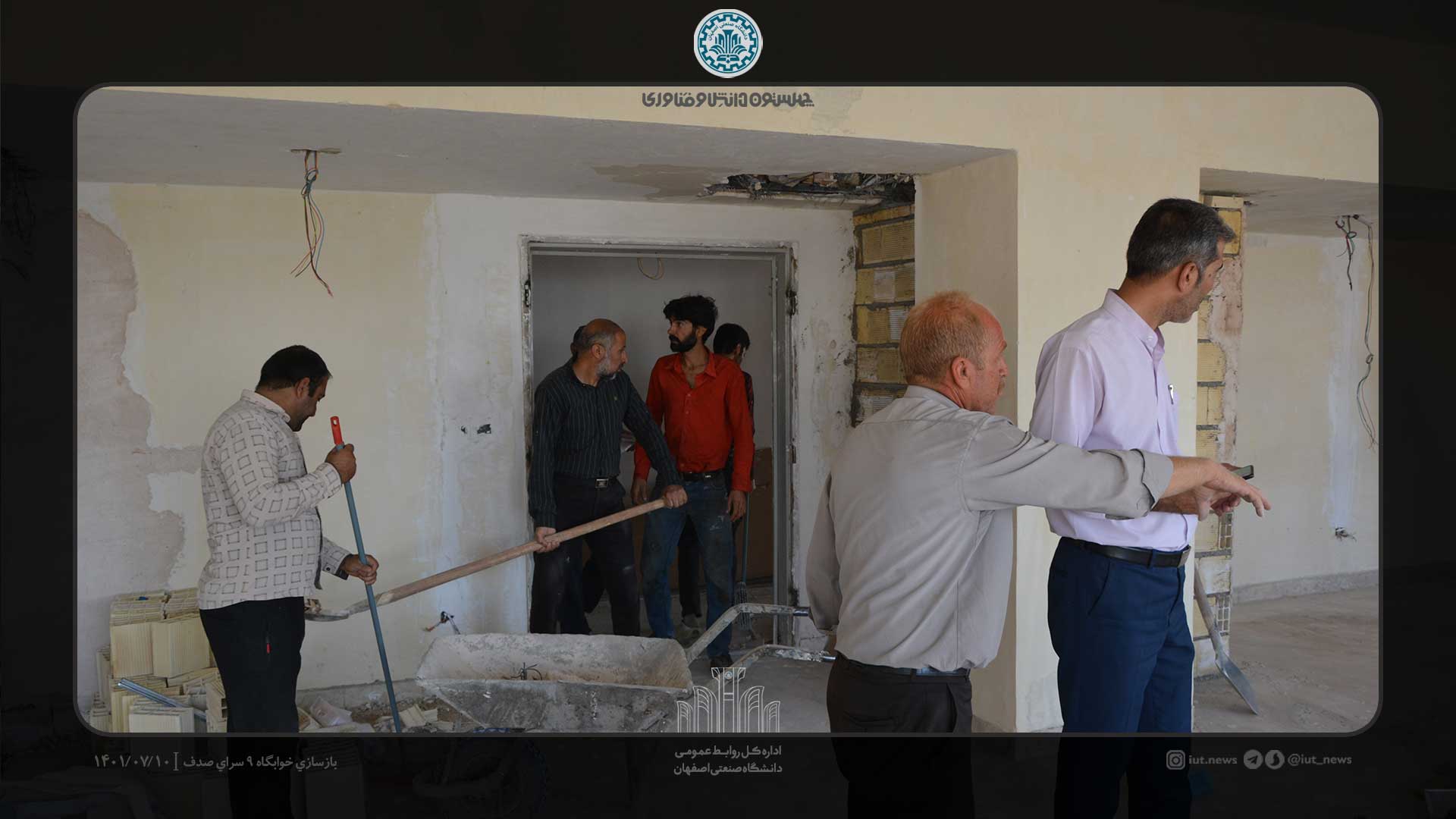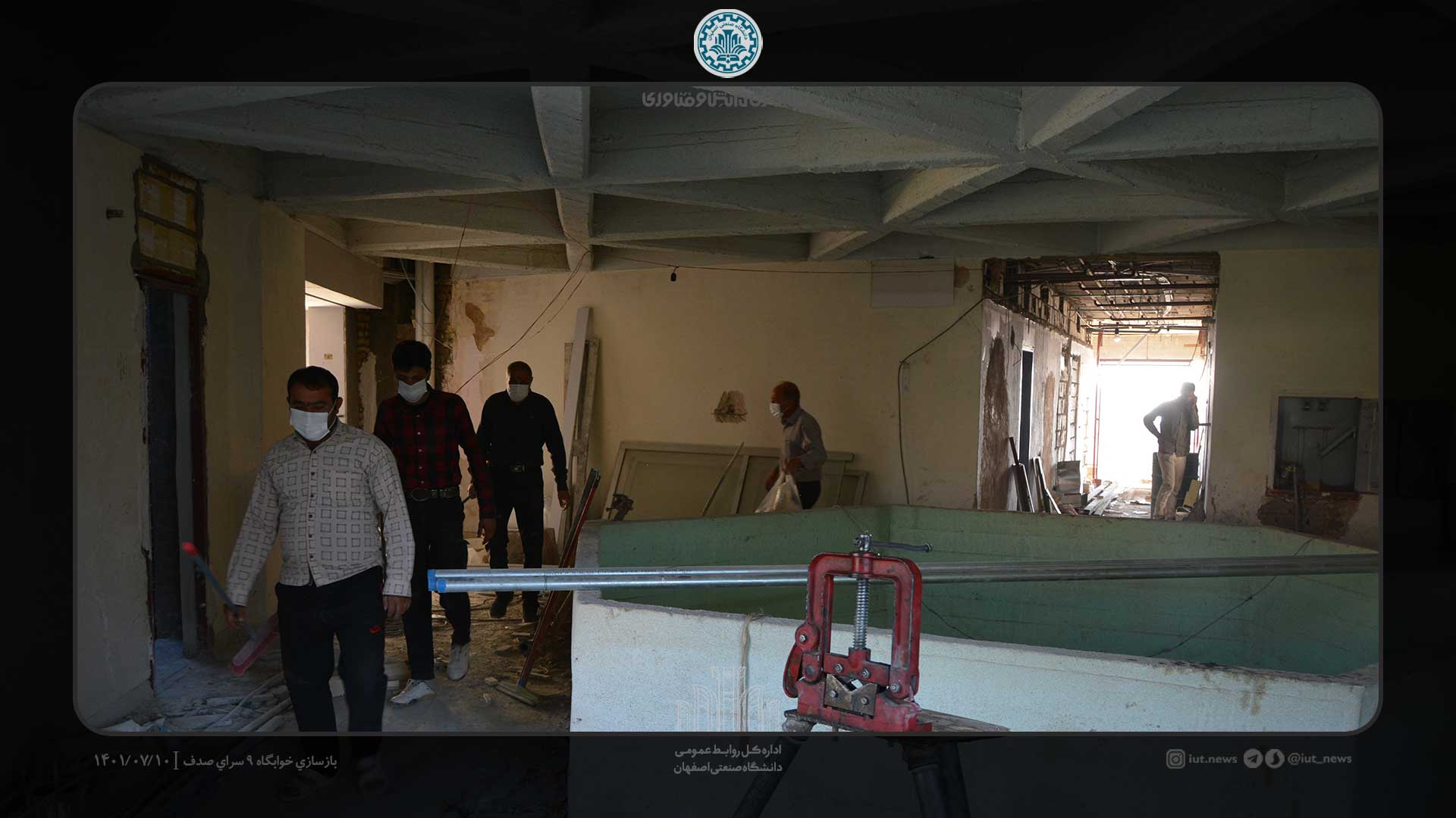 عملیات بازسازی بخش مهمی از خوابگاه 9 سرای صدف دانشگاه صنعتی اصفهان در زمانی کمتر از 2 ماه، به همت شبانهروزی عوامل اجرایی پیمانکار و کارشناسان دفتر فنی و نظارت بر طرحهای عمرانی دانشگاه، صبح جمعه 8 مهر ماه به پایان رسید و این خوابگاه به چرخه اسکان سرای صدف بازگشت.