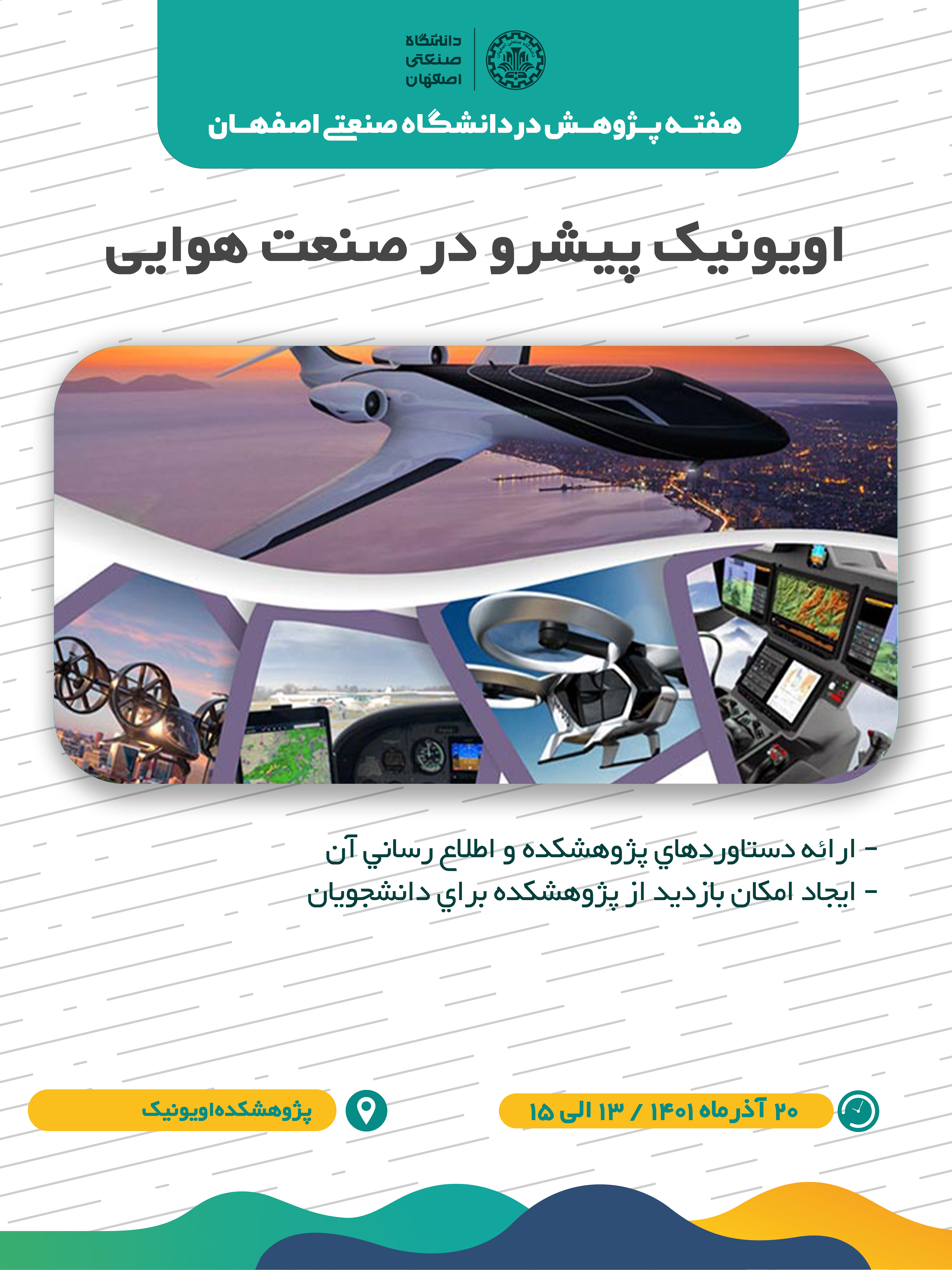 دانشکده مهندسی کشاورزیاویونیک پیشرو در صنعت هوایی - ارائه دستاوردهاي پژوهشكده و اطلاع رساني آن
