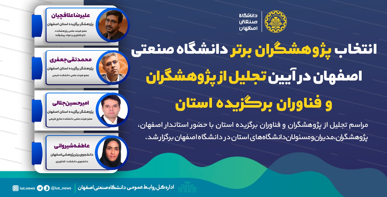 انتخاب پژوهشگران برتر دانشگاه صنعتی اصفهان در آئین تجلیل از پژوهشگران و فناوران برگزیده استان