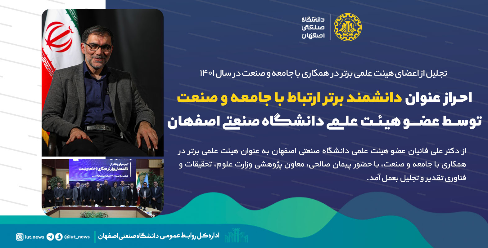 احراز عنوان دانشمند برتر ارتباط با جامعه و صنعت توسط عضو هیئت علمی دانشگاه صنعتی اصفهان