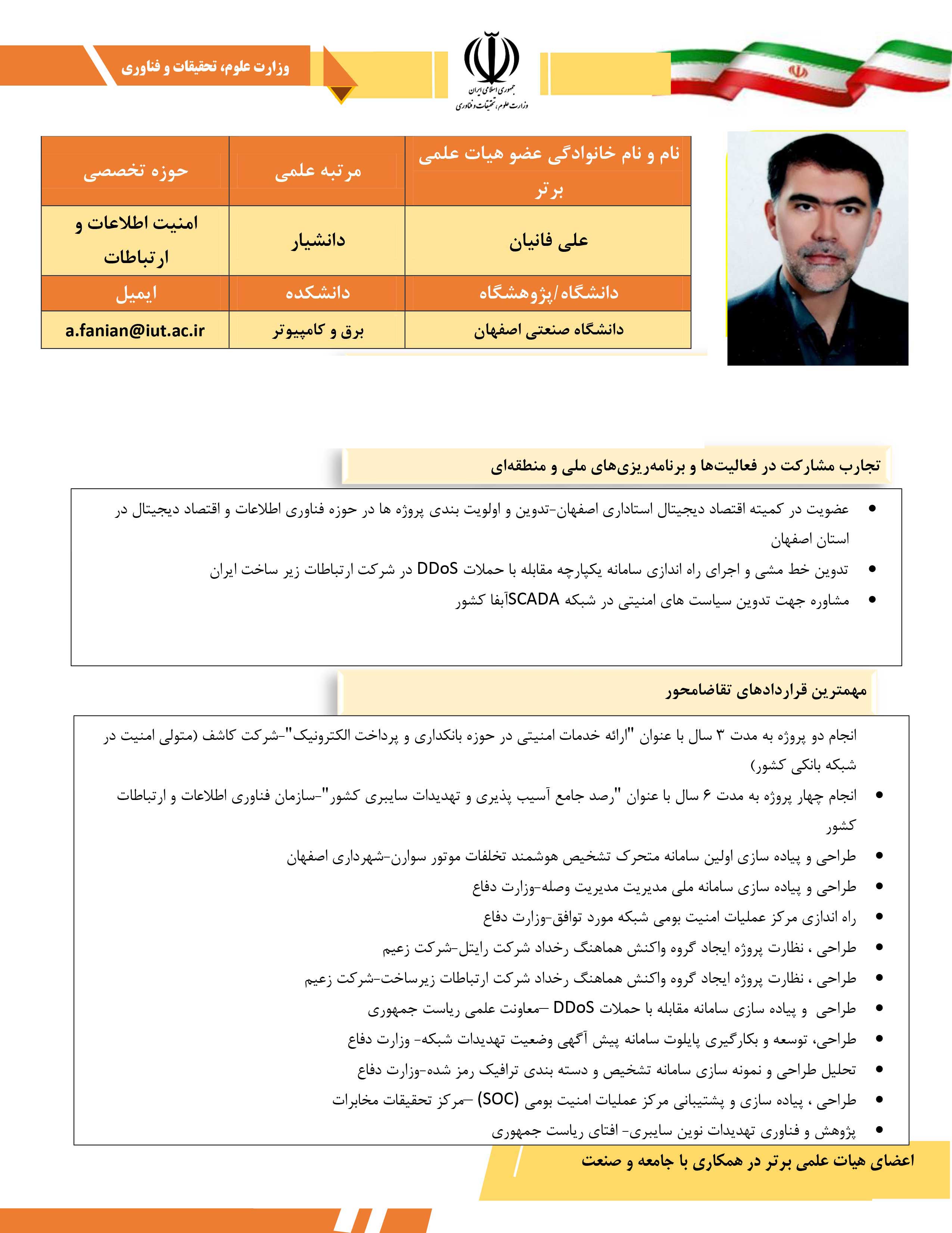 گفتني است: مشارکت در فعالیتها و برنامهریزیهای ملی و منطقهای، اجرای قراردادهای پژوهشی تقاضامحور، ارائه دستاوردهای مهم در رفع مشکلات کشور، همکاری با نهادها و صنایع کشور برای بهبود بهرهوری وکارایی و نقشآفرینی مؤثر در ایجاد و فعالیت شبکههای علمی و تشکلهای تخصصی اثرگذار در امور اجتماعی و اقتصادی، از جمله شاخصهای شناسایی اعضای هیئت علمی برتر در همکاری با جامعه و صنعت عنوان شده است. در ادامه صفحات مرتبط با اعضای هیئت علمی دانشگاه صنعتی اصفهان را مشاهده می کنید.