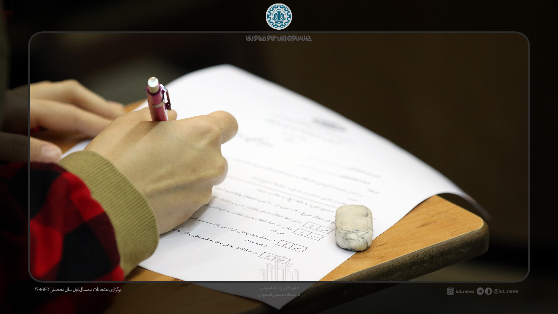 کلیه آزمون های پایانی ترم اول سال تحصیلی 1402- 1401 در حوزه های دانشکده ای و دروس عمومی مشترک دانشگاه صنعتی اصفهان برگزار شد.