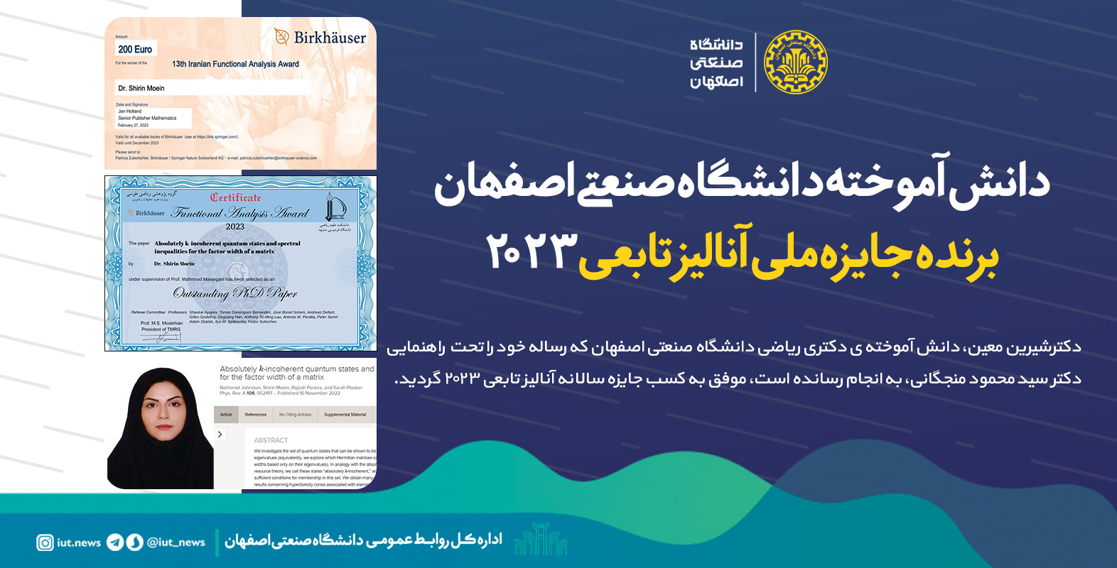 دانش آموخته دانشگاه صنعتی اصفهان برنده جایزه ملی آنالیز تابعی 2023