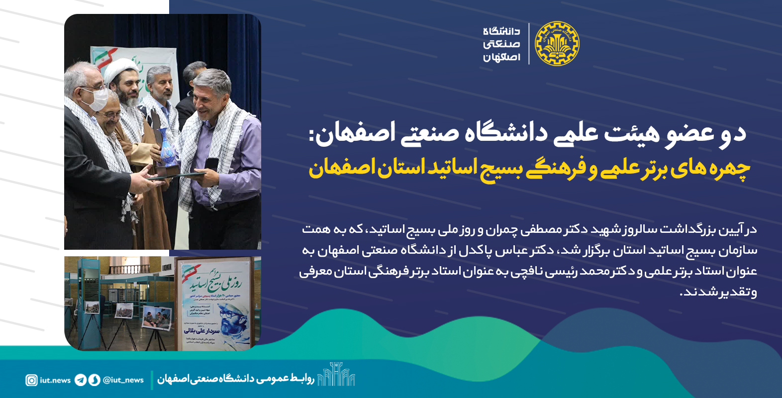 دو عضو هیئت علمی دانشگاه صنعتی اصفهان : چهره های برتر علمی و فرهنگی بسیج اساتید استان اصفهان