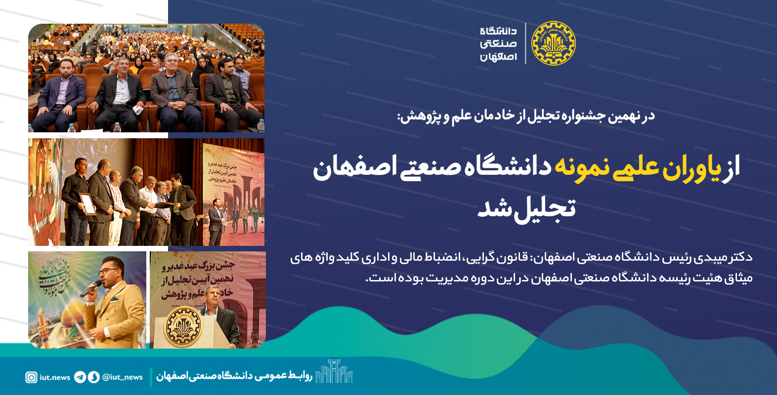 در نهمین جشنواره تجلیل از خادمان علم و پژوهش: از یاوران علمی نمونه دانشگاه صنعتی اصفهان تجلیل شد