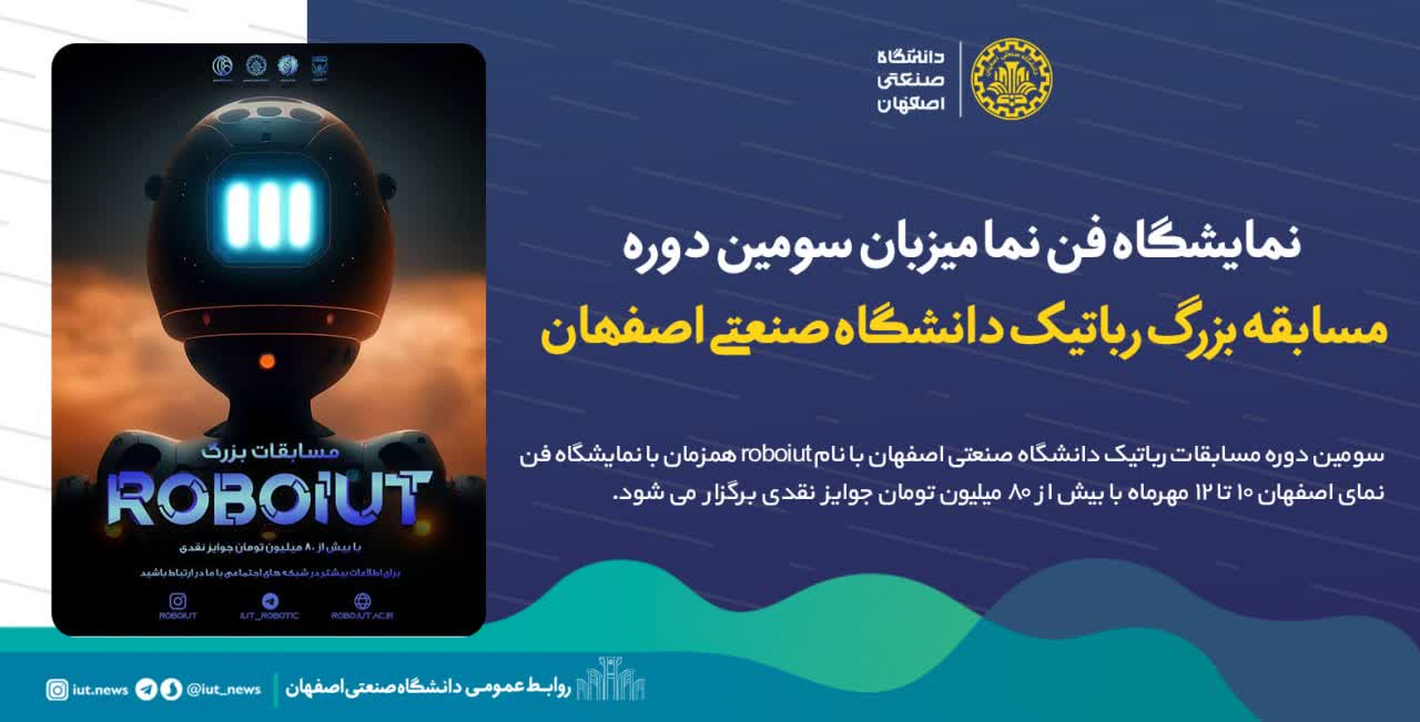 سومین دوره مسابقات رباتیک دانشگاه صنعتی اصفهان با نام ROBOIUT همزمان با نمایشگاه فن نمای اصفهان ۱۰ تا ۱۲ مهرماه برگزار میشود.