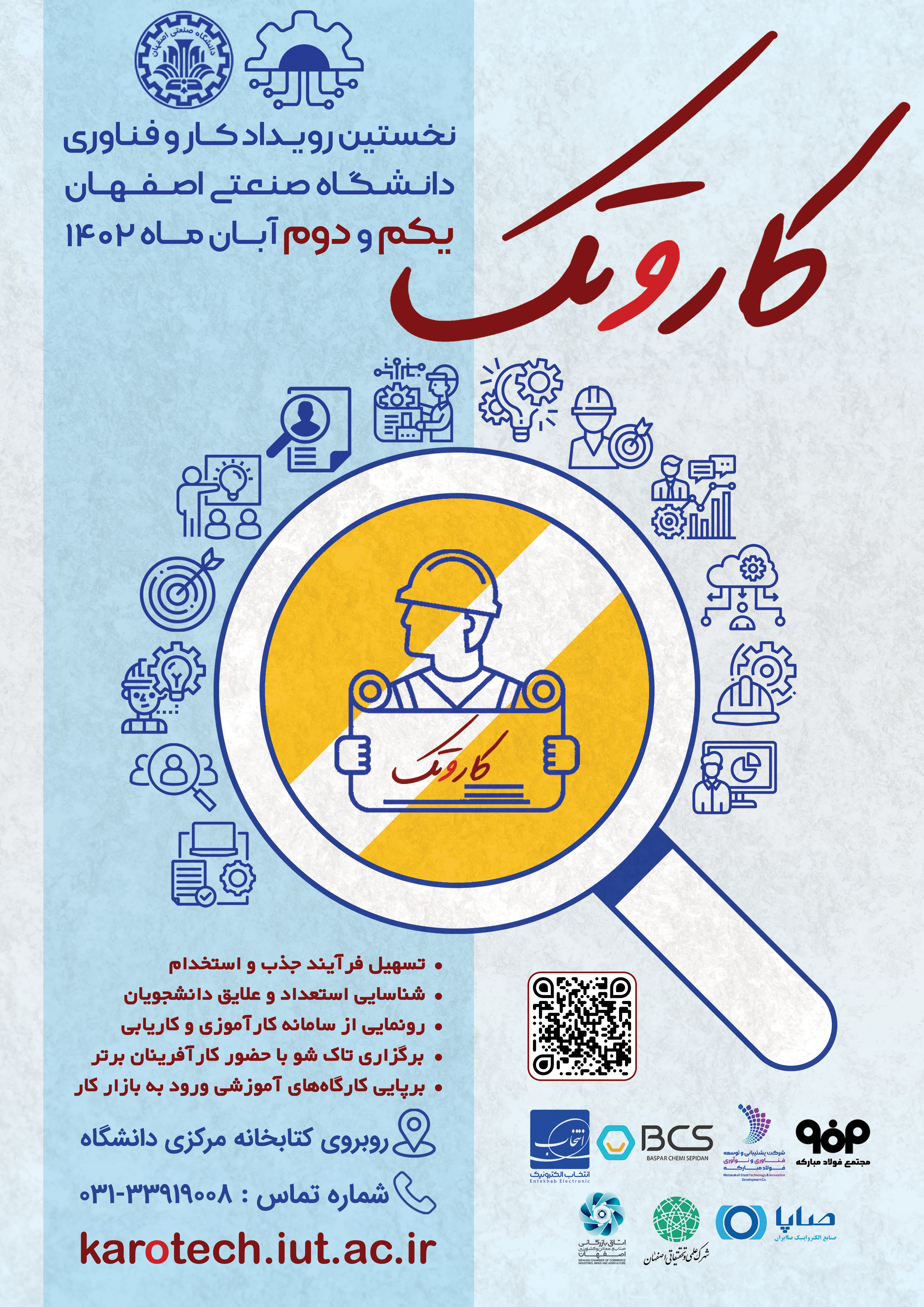 دانشگاه صنعتی اصفهان در نظر دارد رویداد کار و تک را در تاریخ ۱ و ۲ آبان ماه سال جاری برگزار کند.