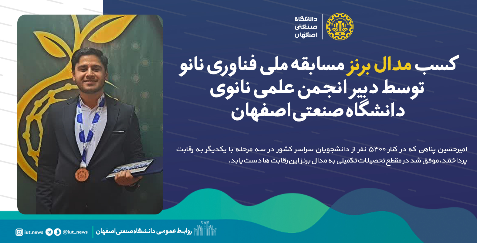 کسب مدال برنز مسابقه ملی فناوری نانو، توسط دبیر انجمن علمی نانوی دانشگاه صنعتی اصفهان