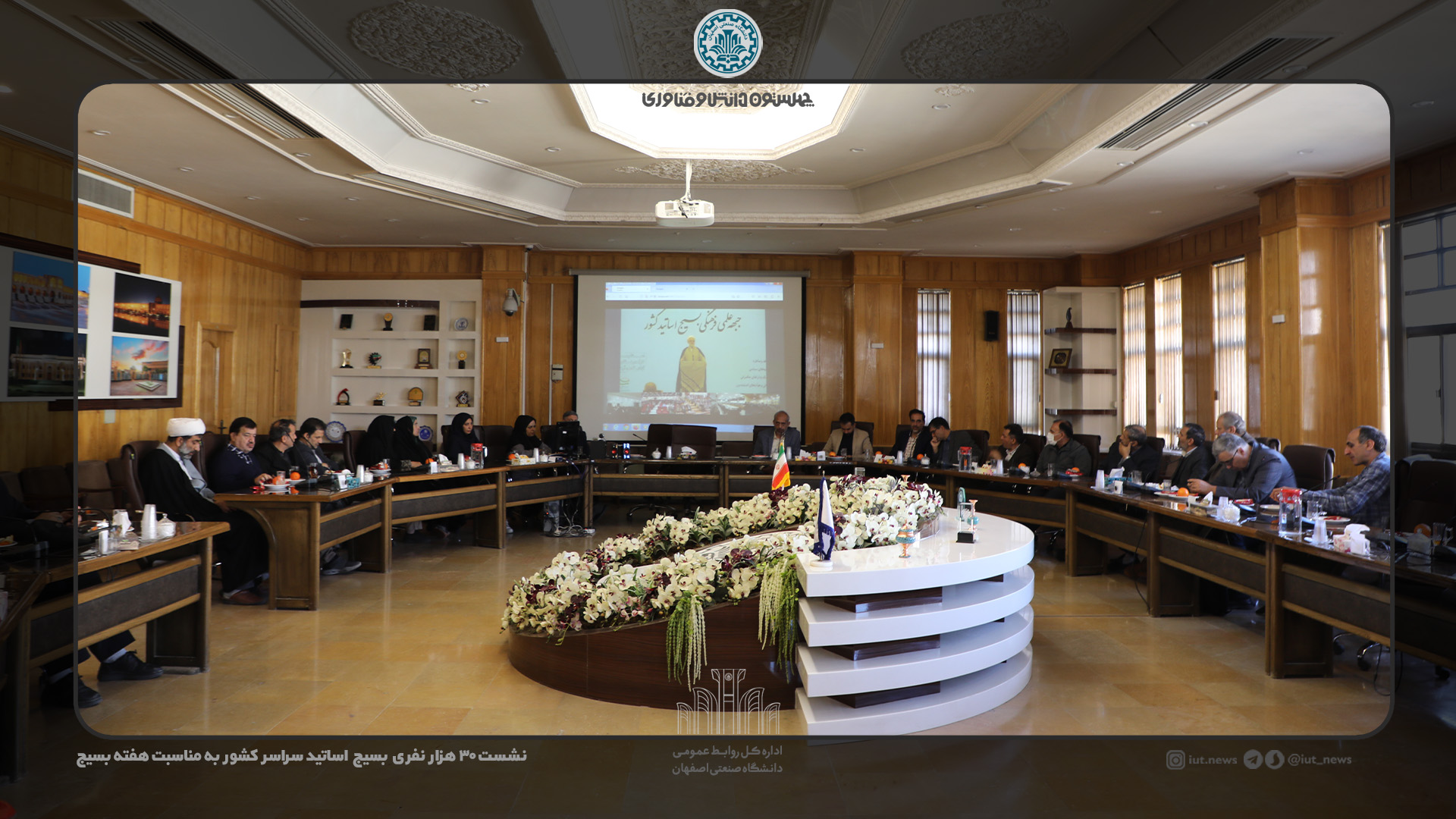 نشست سراسری ۳۰ هزارنفری جبهه علمی و فرهنگی بسیج اساتید کشور روز سهشنبه ۳۰ آبان ۱۴۰۲ باهدف گرامیداشت هفته بسیج همزمان با سراسر کشور در دانشگاه صنعتی اصفهان برگزار شد.