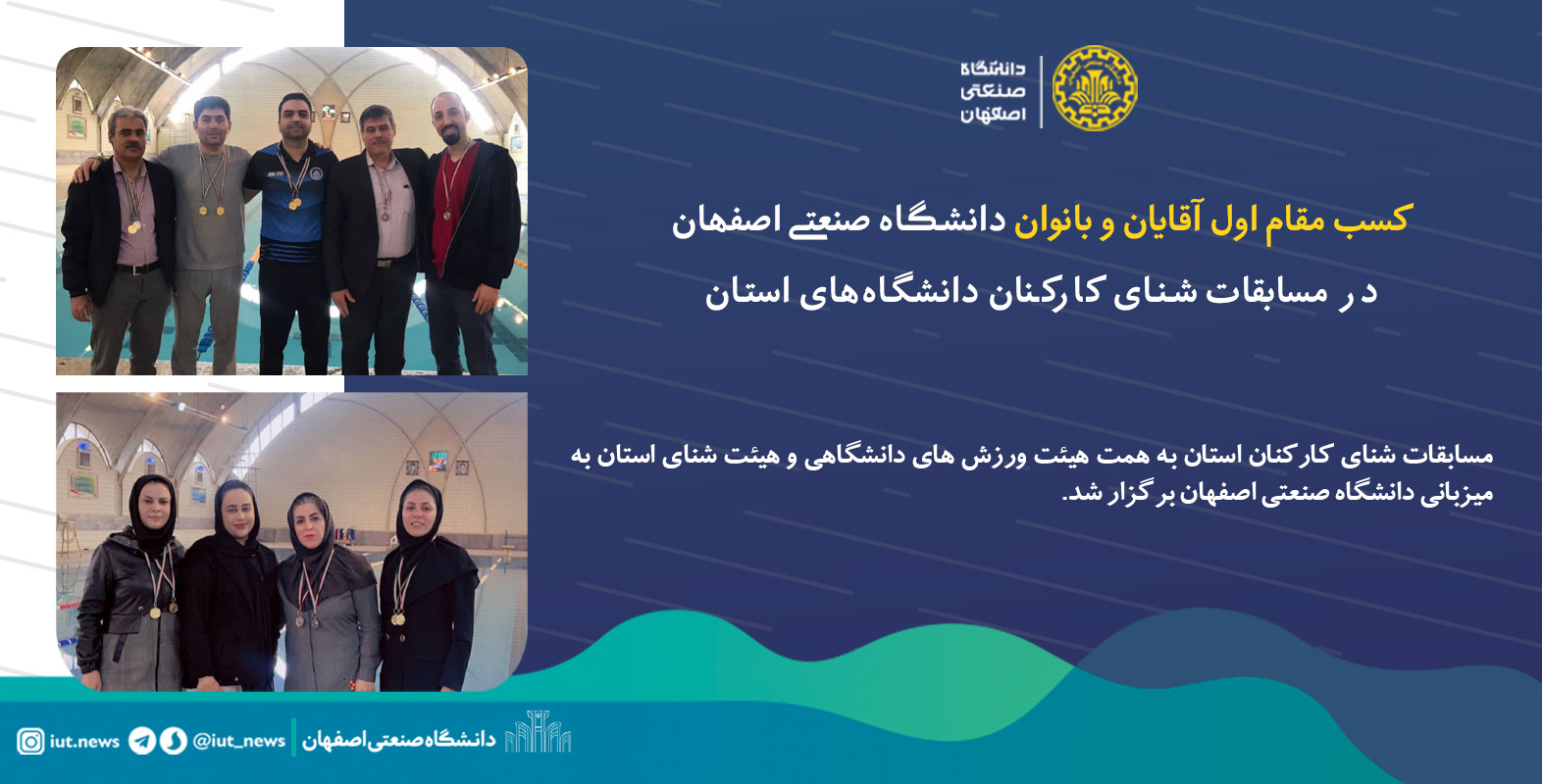 کسب مقام اول آقایان و بانوان دانشگاه صنعتی اصفهان در مسابقات شنای کارکنان دانشگاههای استان