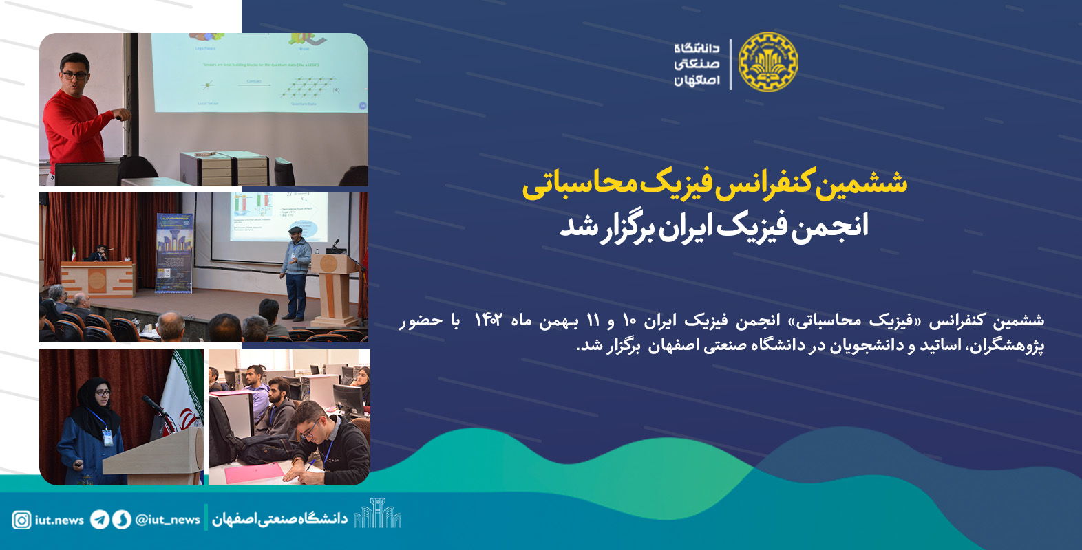 ششمین کنفرانس «فیزیک محاسباتی» انجمن فیزیک ایران 10 و 11 بهمن ماه 1402 با حضور پژوهشگران، اساتید و دانشجویان در دانشگاه صنعتی اصفهان برگزار شد.