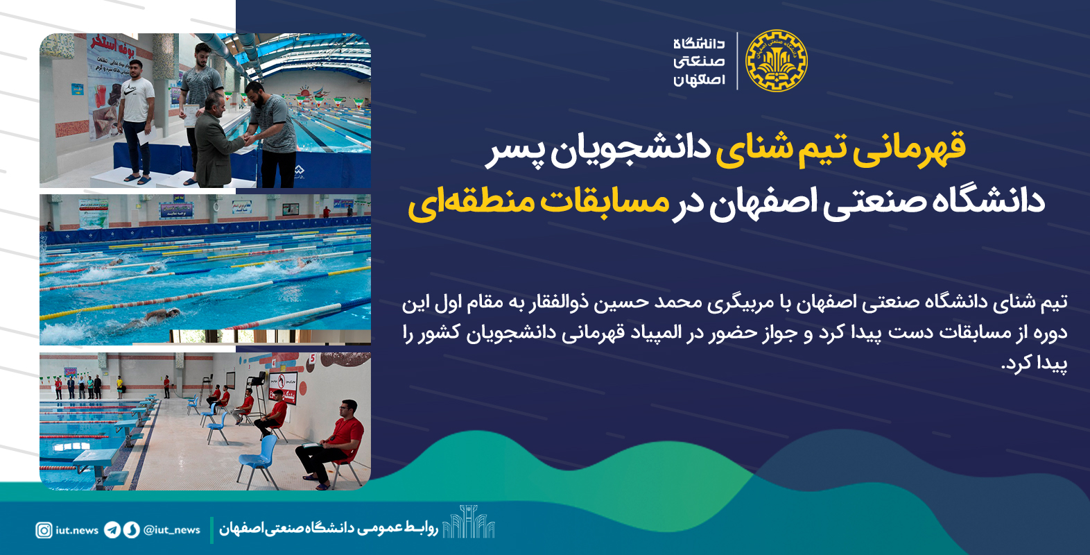 قهرمانی تیم شنای دانشجویان پسر دانشگاه صنعتی اصفهان در مسابقات منطقه