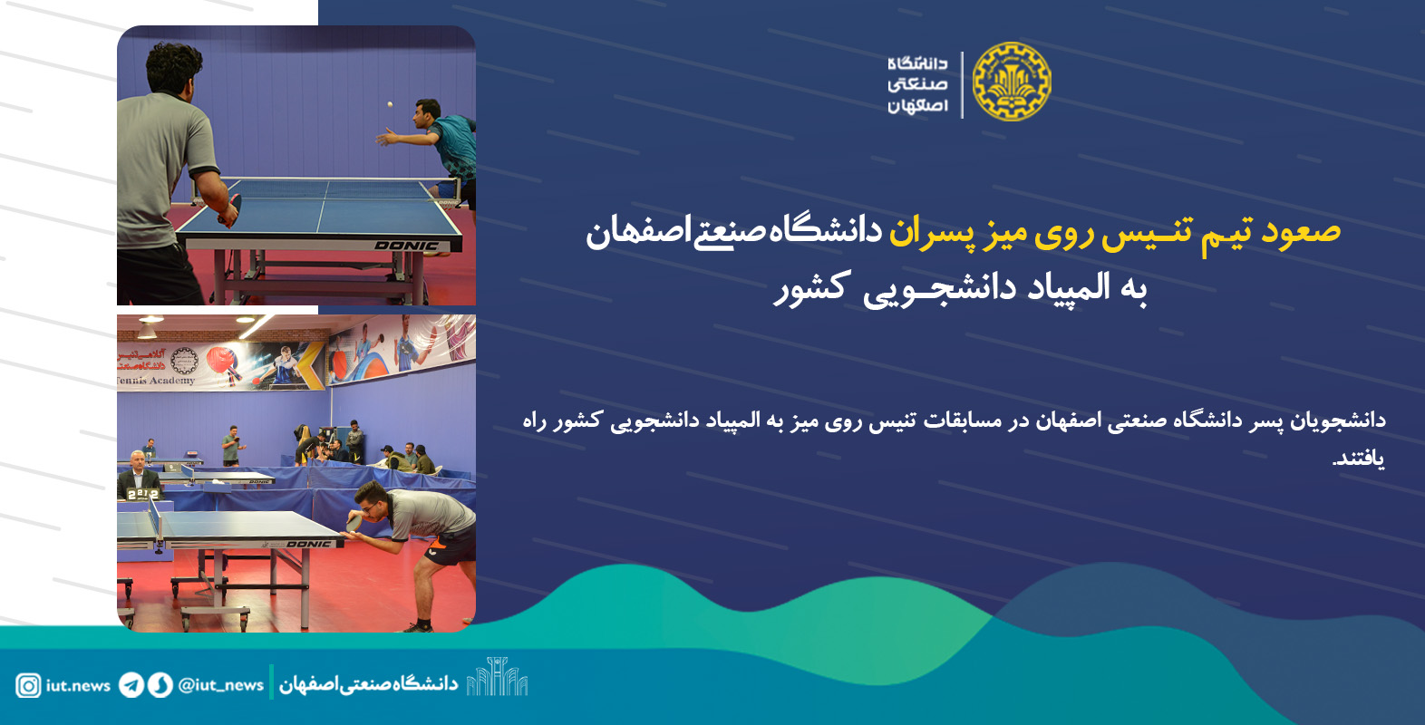 دانشجویان پسر دانشگاه صنعتی اصفهان در مسابقات تنیس روی میز به المپیاد دانشجویی کشور راه یافتند.