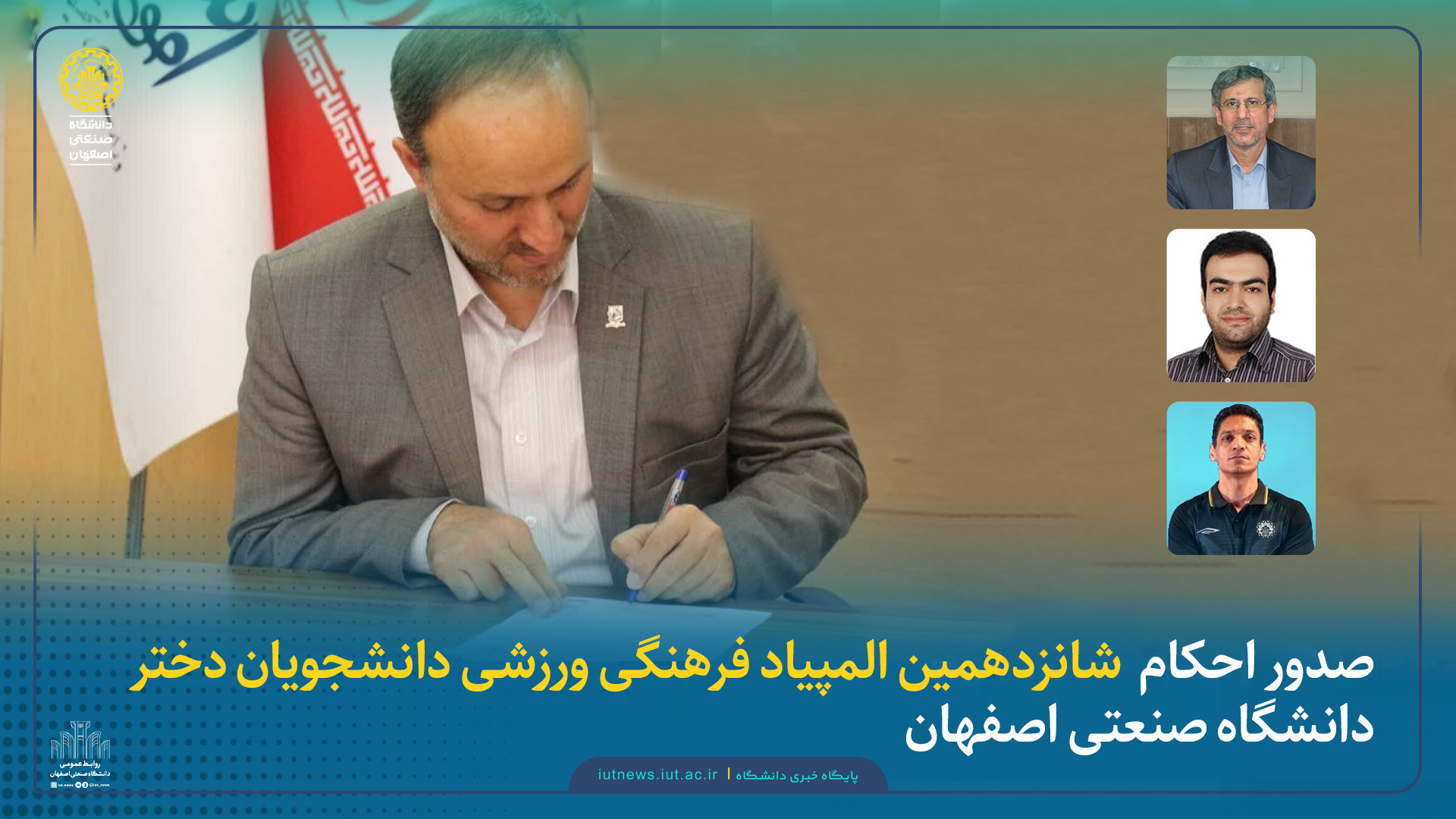 همچنین با حکم ابراهیم نعیمی، سرپرست معاونت امور دانشجویان داخل، دکتر مجتبی بابایی خورزوقی، معاون دانشجویی دانشگاه صنعتی اصفهان و عباس فیروزیان، مدیر تربیتبدنی دانشگاه صنعتی اصفهان به ترتیب بهعنوان سرپرست کل و دبیرکل اجرایی شانزدهمین المپیاد فرهنگی ورزشی دانشجویان دختر دانشگاهها و مؤسسات آموزش عالی کشور تعیین شدند.