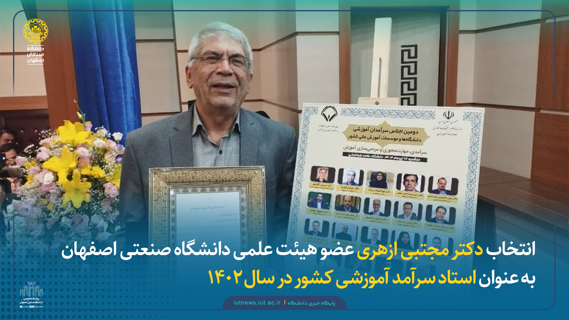پرفسور مجتبی ازهری استاد دانشکده مهندسی عمران دانشگاه صنعتی اصفهان در دومین اجلاس سرآمدان آموزشی دانشگاهها و مؤسسات آموزش عالی کشور، برگزیده سرآمد حوزه آموزش کشور شناخته و مورد تقدیر وزیر علوم تحقیقات و فناوری قرار گرفت.