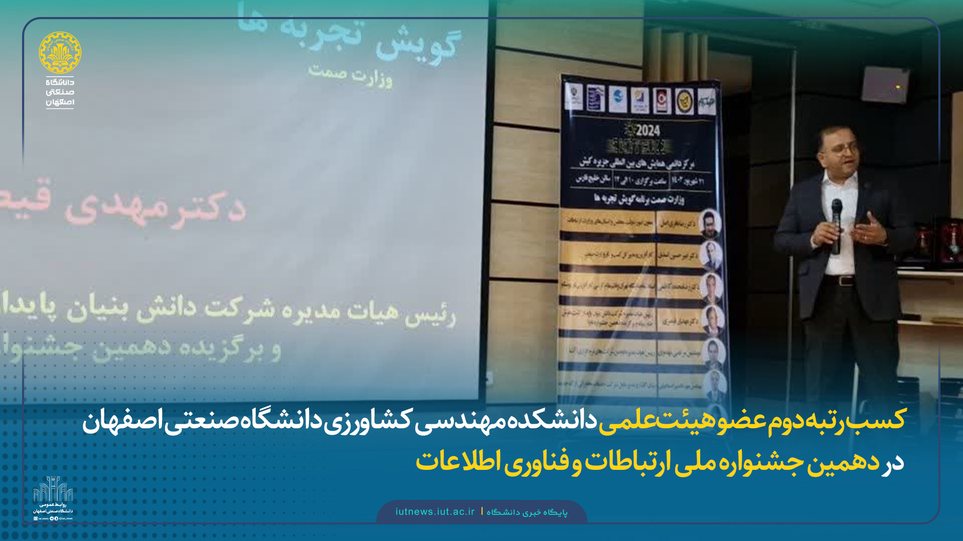 کسب رتبه دوم عضو هیئتعلمی دانشکده مهندسی کشاورزی دانشگاه صنعتی اصفهان در دهمین جشنواره ملی ارتباطات و فناوری اطلاعات