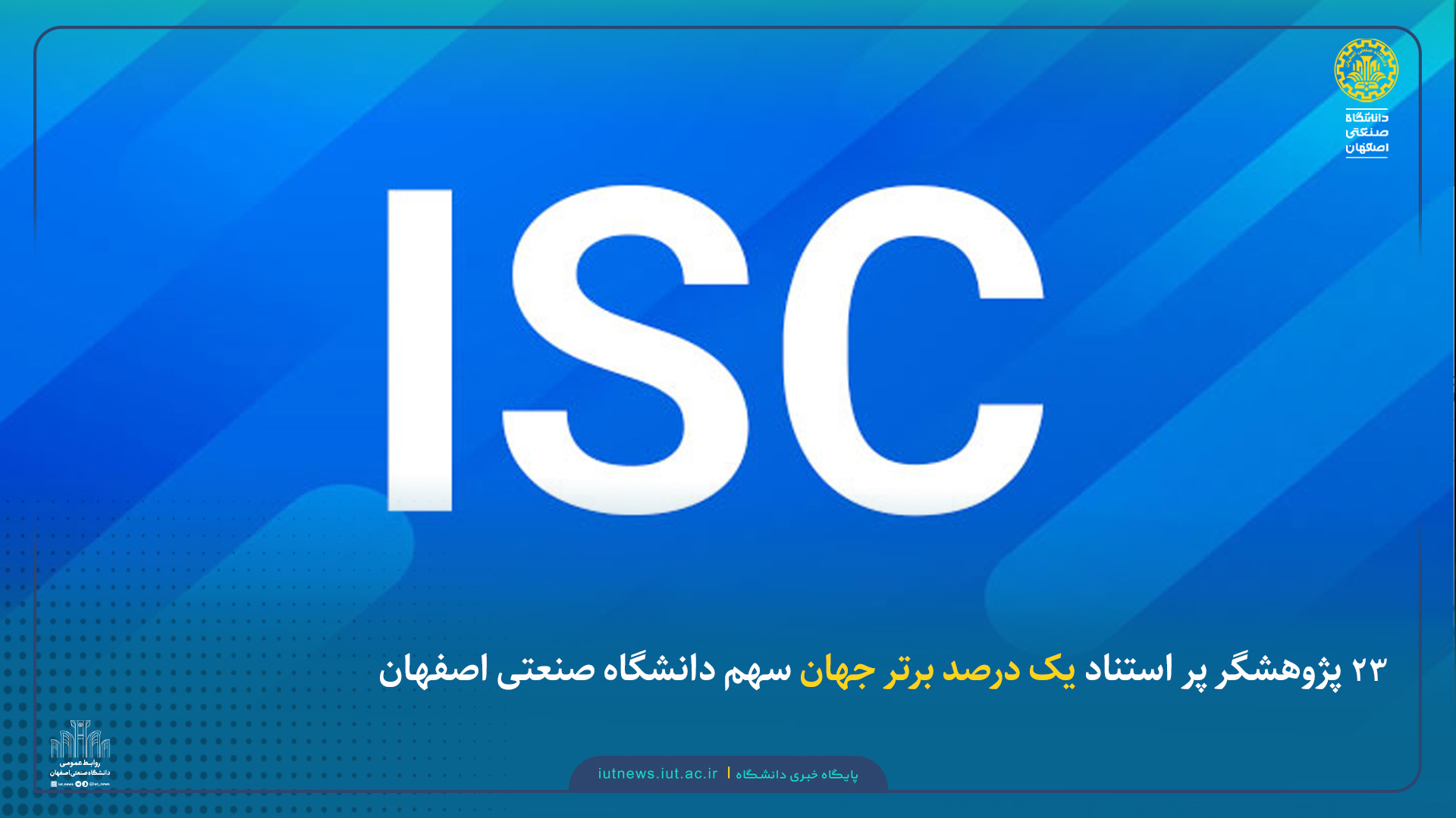 ۲۳ پژوهشگر دانشگاه صنعتی اصفهان در فهرست پژوهشگران ایرانی پر استناد یک درصد برتر جهان مؤسسه استنادی و پایش علم و فناوری جهان اسلام (ISC) سال ۱۴۰۳ معرفی شدند.