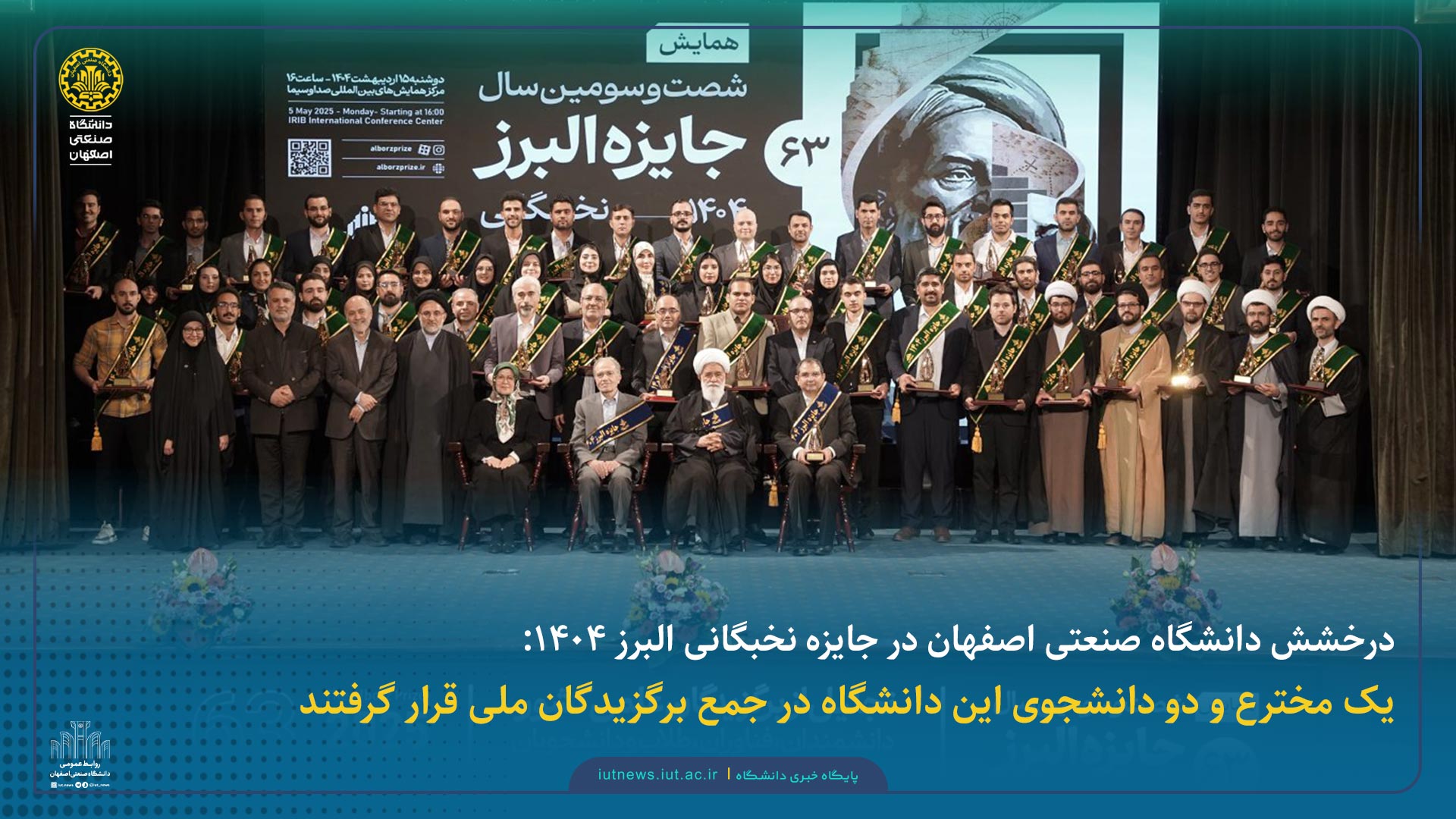 درخشش دانشگاه صنعتی اصفهان در جایزه نخبگانی البرز ۱۴۰۴ | یک مخترع و دو دانشجوی این دانشگاه در جمع برگزیدگان ملی قرار گرفتند