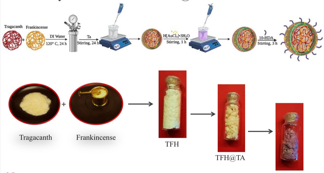 دانش آموخته دانشگاه صنعتی اصفهان تصریح کرد: در این پژوهش، نوع جدیدی از نانوحاملهای هسته-پوسته بر پایه هیدروژل صمغ های طبیعی کندر و کتیرا که در طب سنتی برای کاهش التهاب به کار میروند و شبکهای از پلی فنول و نانوذرات طلا که پایه ساخت داروهای سنتزی در درمان بسیاری از بیماریها هستند، به همراه ماده موثره ژل رویال زنبور عسل با ویژگیهای ثابت شده در تنظیم سیستم ایمنی در این نانوکامپوزیت بارگذاری شد.