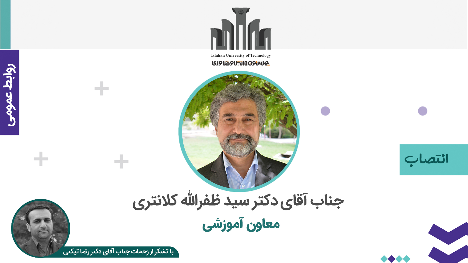 سرپرست دانشگاه صنعتی اصفهان طی حکمی دکتر سيد ظفرالله کلانتری، استاد دانشکده فیزیک این دانشگاه را به سمت معاون آموزشی دانشگاه منصوب کرد.